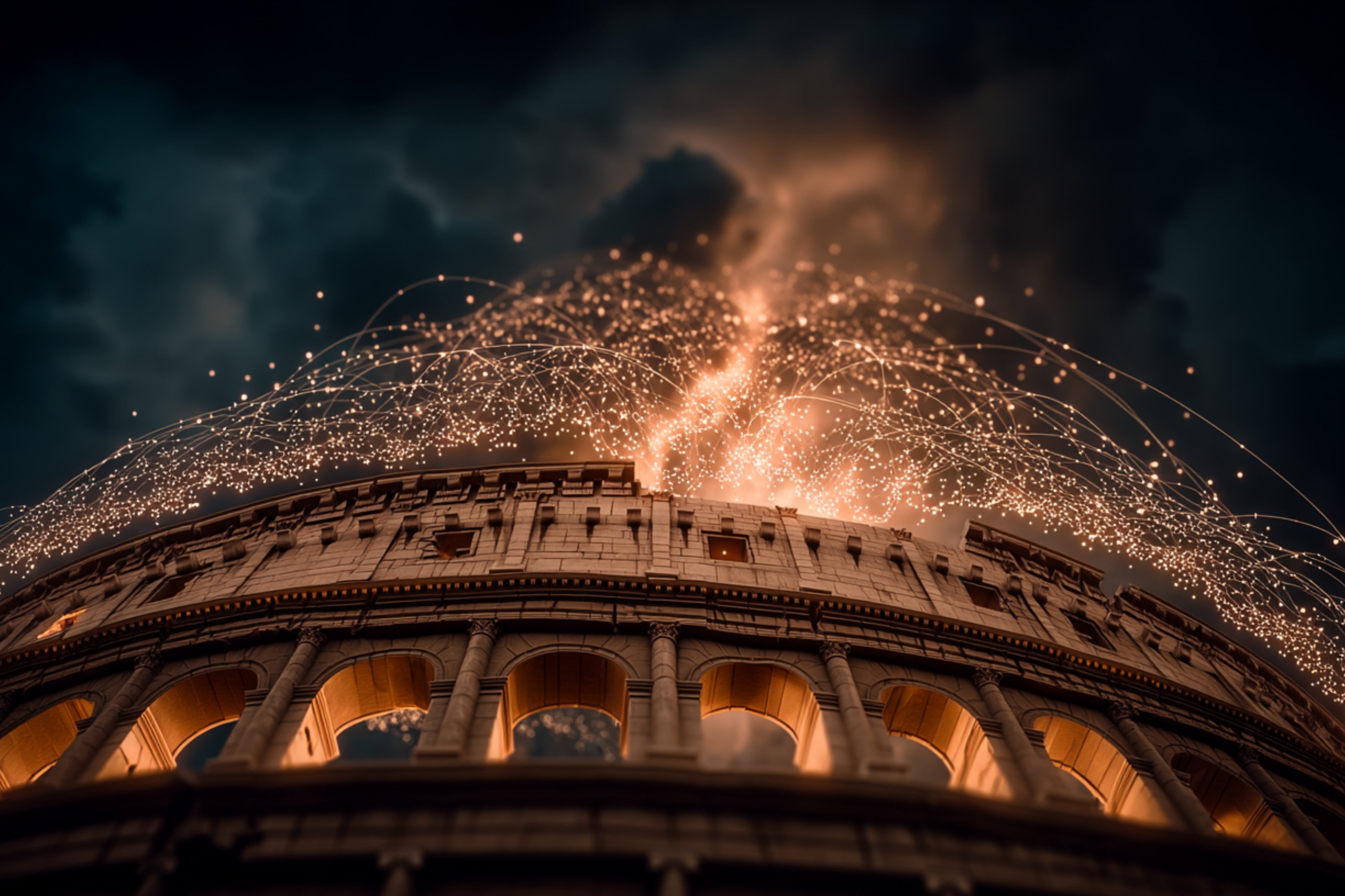 Witness the Colosseum reborn in a blaze of light and history. This powerful digital artwork fuses ancient grandeur with cinematic drama, capturing the fiery spirit of Rome’s timeless legacy. A striking piece that brings bold energy and historical depth to any modern space.