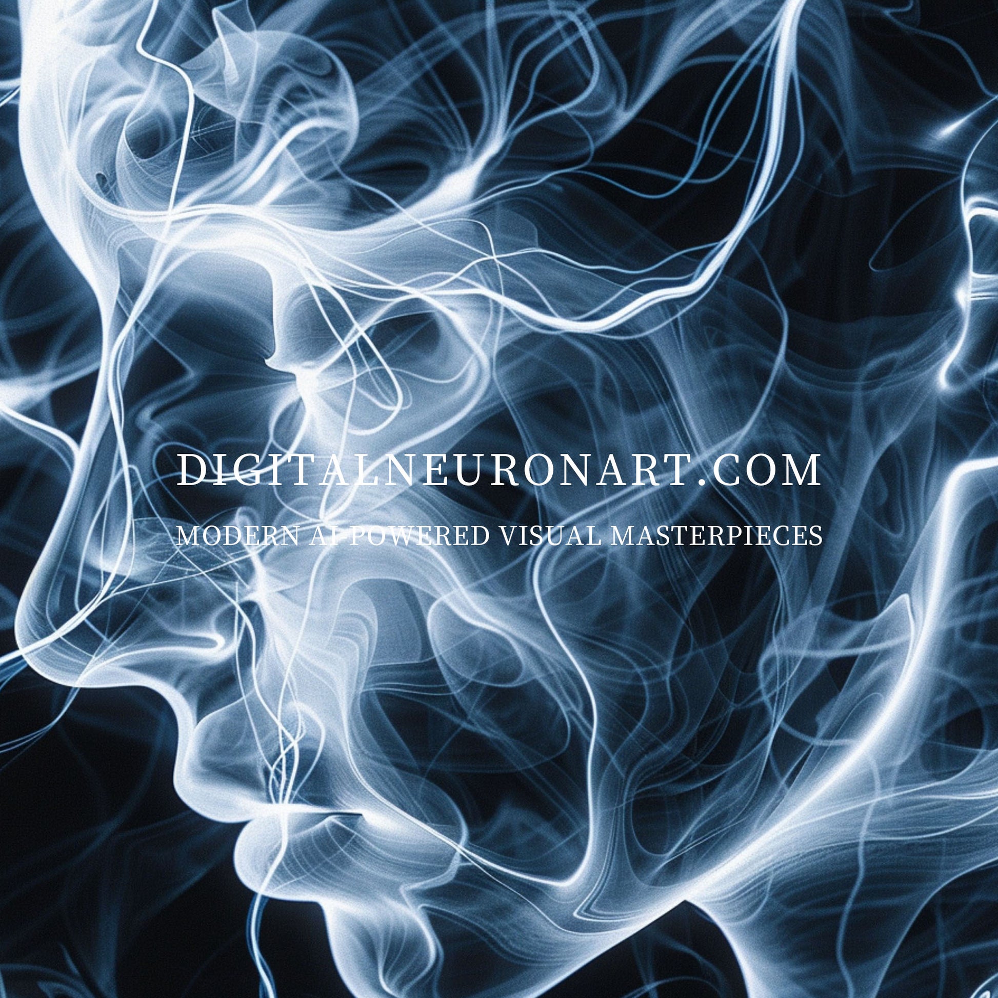 “编码呼吸”将无形之物视觉化——数字烟雾与神经流的舞动构成了思维的轮廓。这幅人工智能生成的抽象肖像,通过黑暗虚空中飘渺的白色气流,唤起智慧、能量与内省的脉动。
