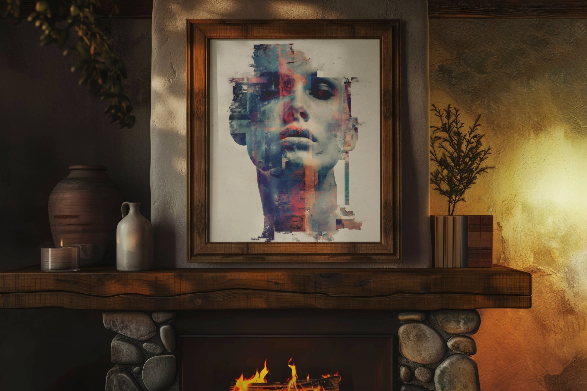 碎片化的视觉——抽象数字肖像艺术印刷 | 现代人工智能生成的墙面装饰