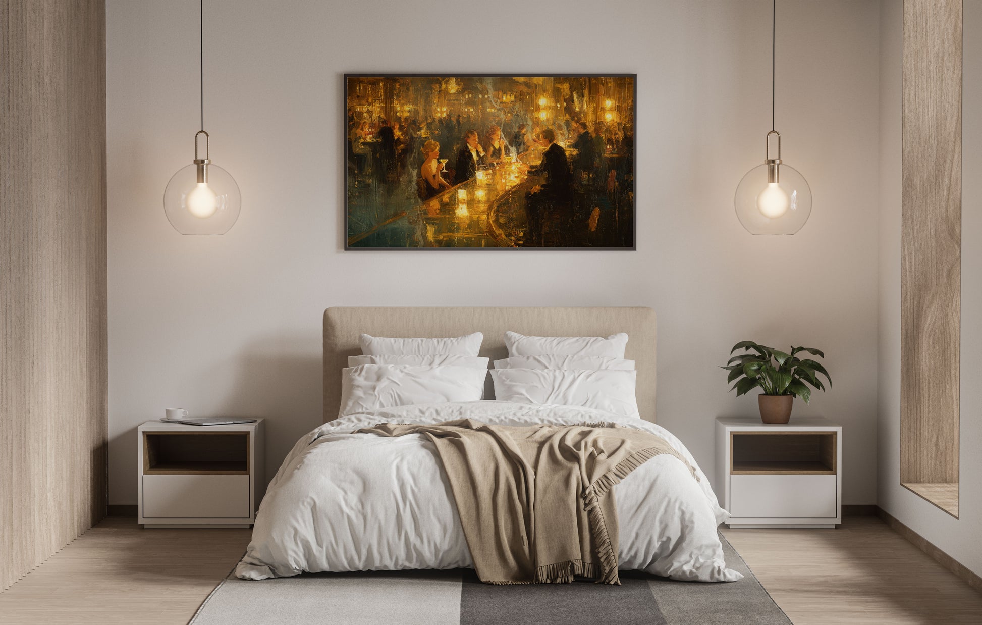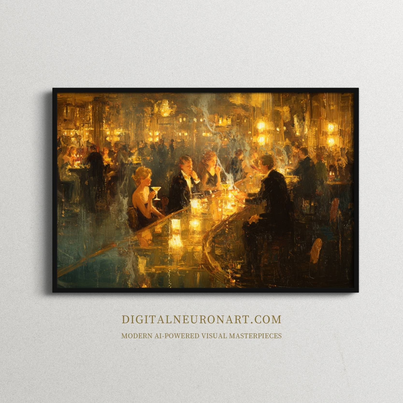 酒吧里的金色夜晚——数字下载美术印刷品 | 高分辨率可打印墙面艺术