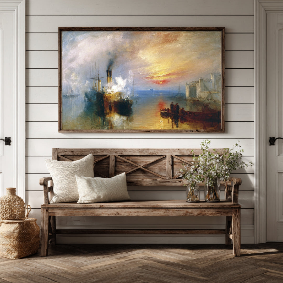 港口日落 – 浪漫海洋风景油画 | 数字下载墙艺术