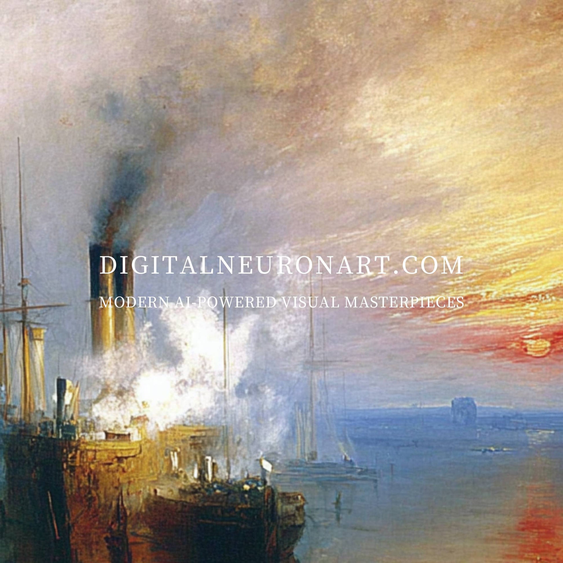 感受宁静优雅的“海港日落” ,一幅浪漫的海景画沐浴在金色和深红色的光芒中。当太阳落山时,轮船和帆船停泊在宁静的港口,在平静的水面上投下温暖的倒影。这幅高分辨率的数字艺术作品非常适合航海爱好者、复古艺术爱好者,以及任何想要为家居或办公室装饰一件经典大气作品的人。