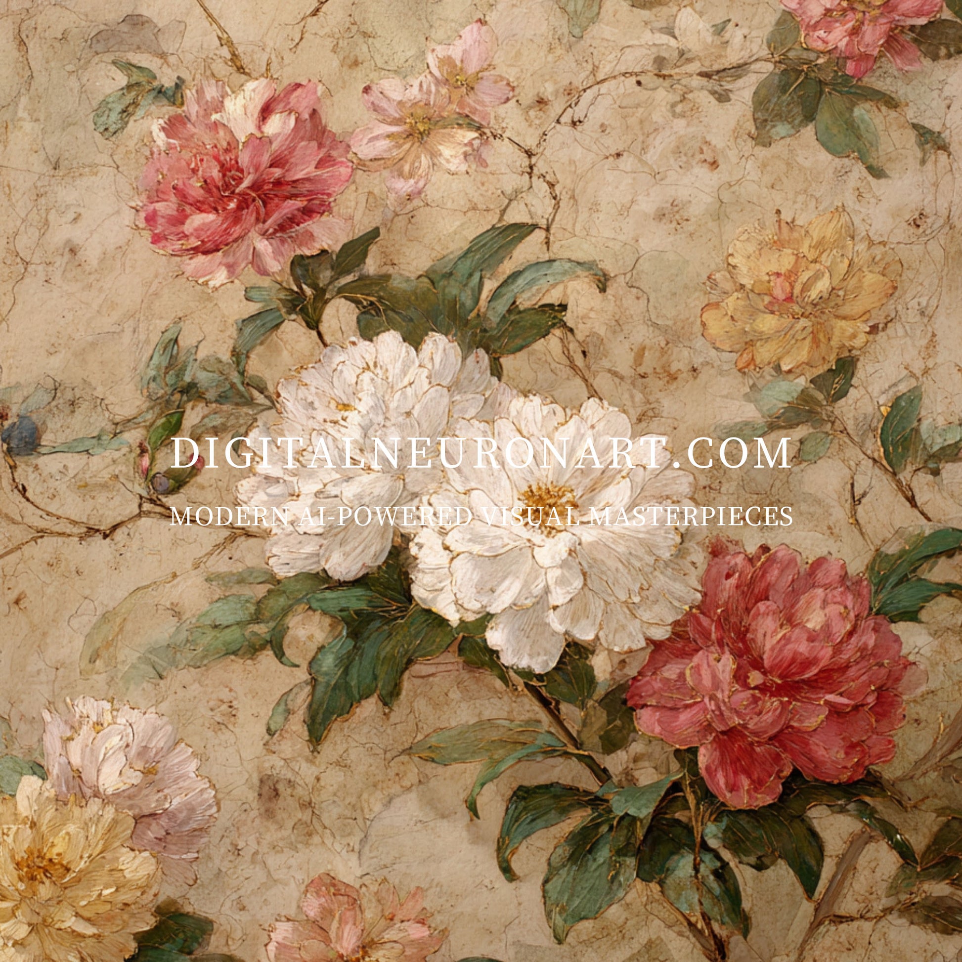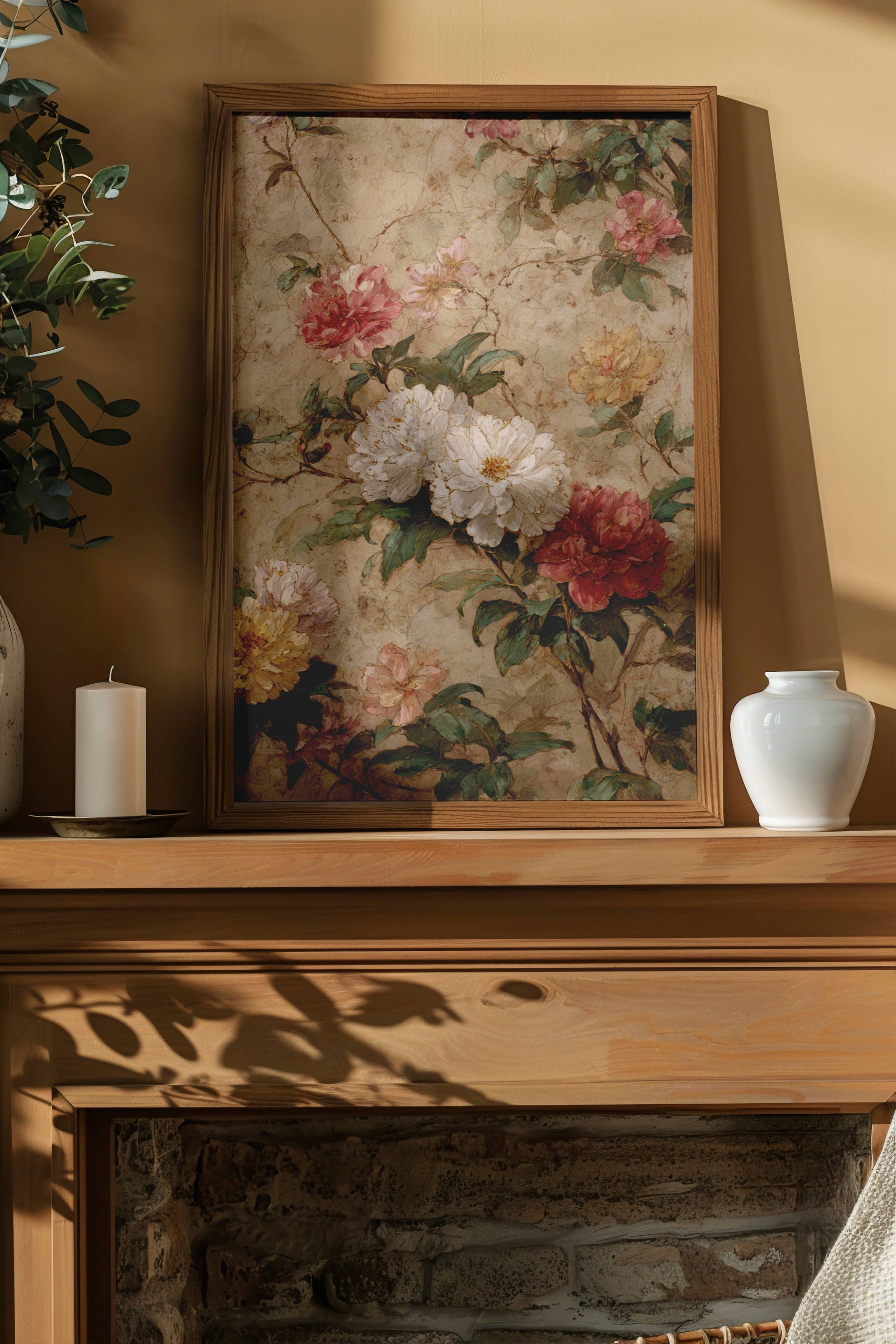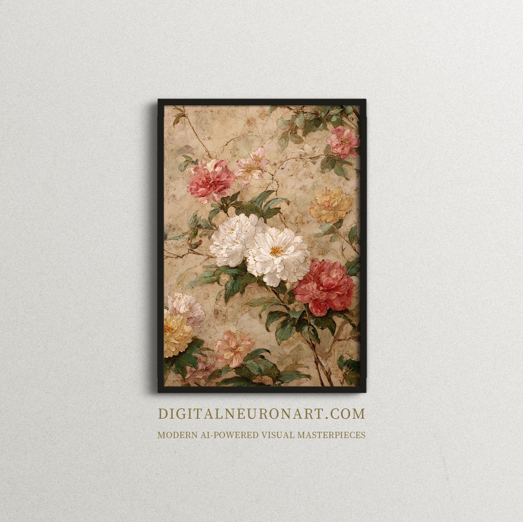 牡丹园遐想 – 仿古花卉印花 | 数字下载 | 复古风格墙面艺术