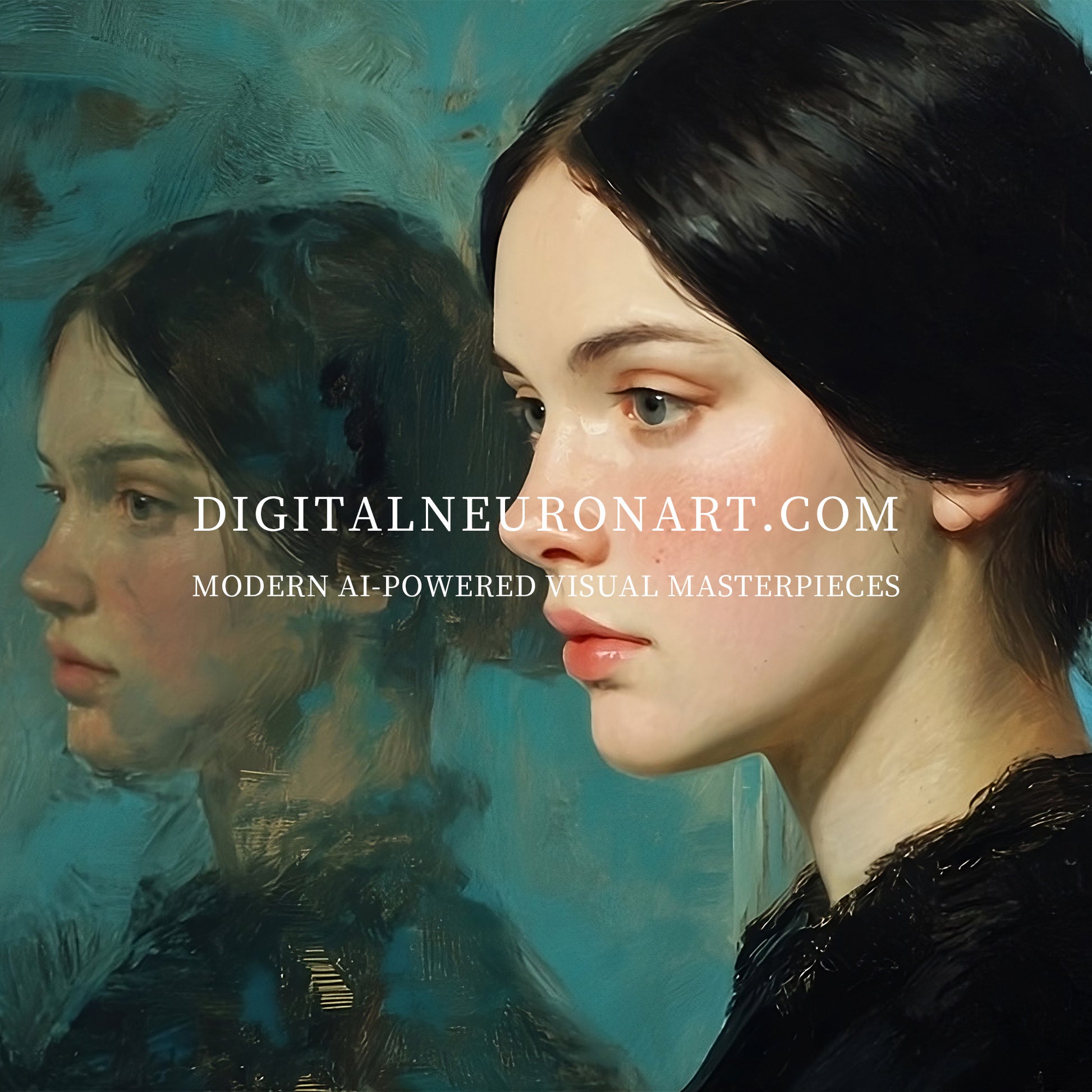 优雅的倒影 - 可打印的数字艺术肖像 | 即时下载 | 人工智能生成的精美艺术印刷品