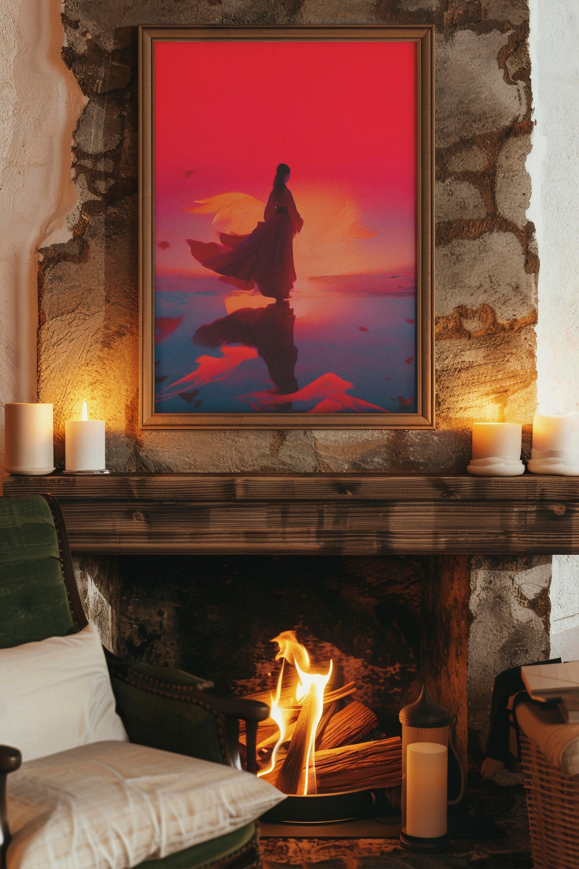 Scarlet Reflection – Modern Surreal Fantasy Illustration | Digital Download Wall Art