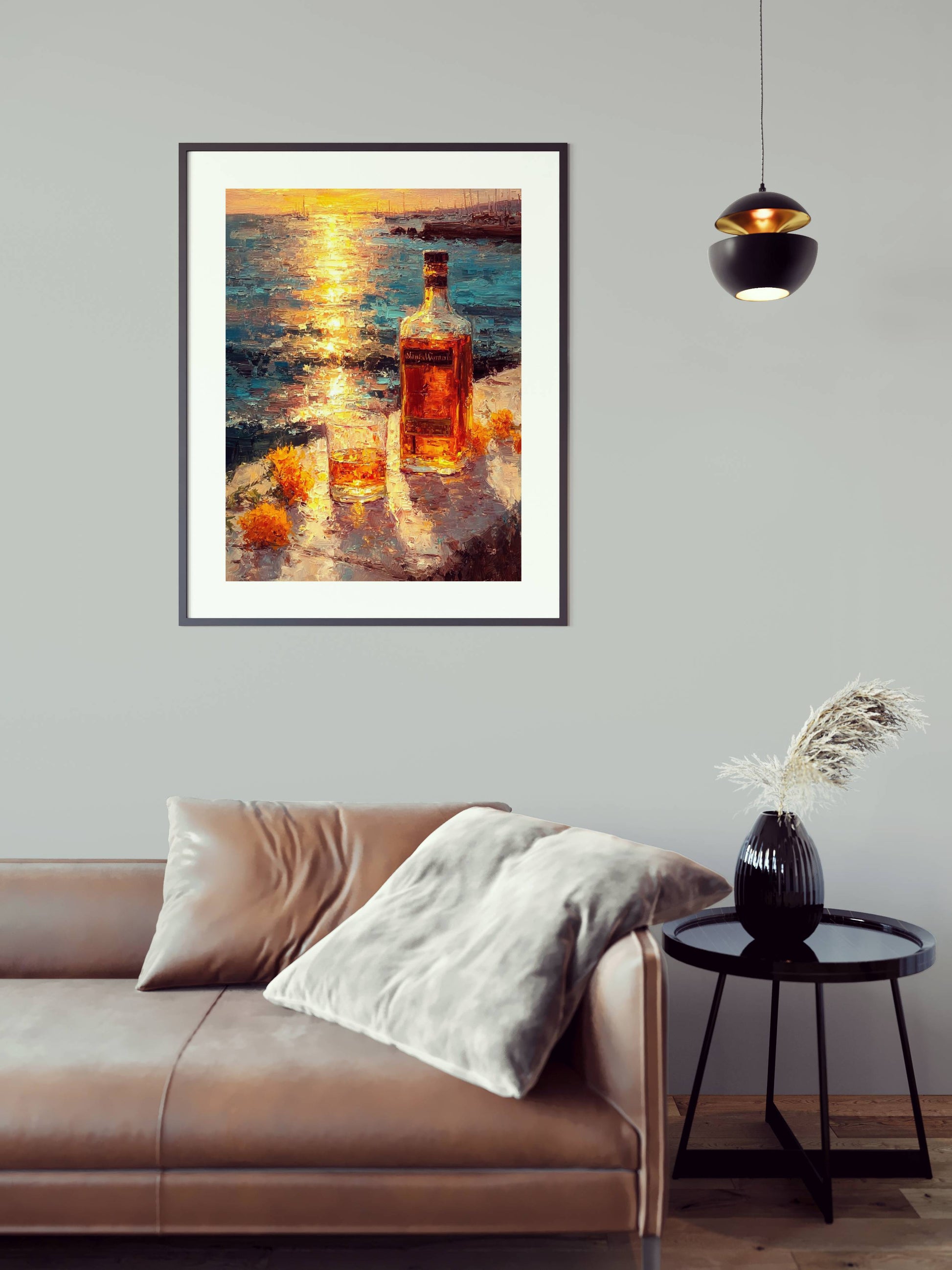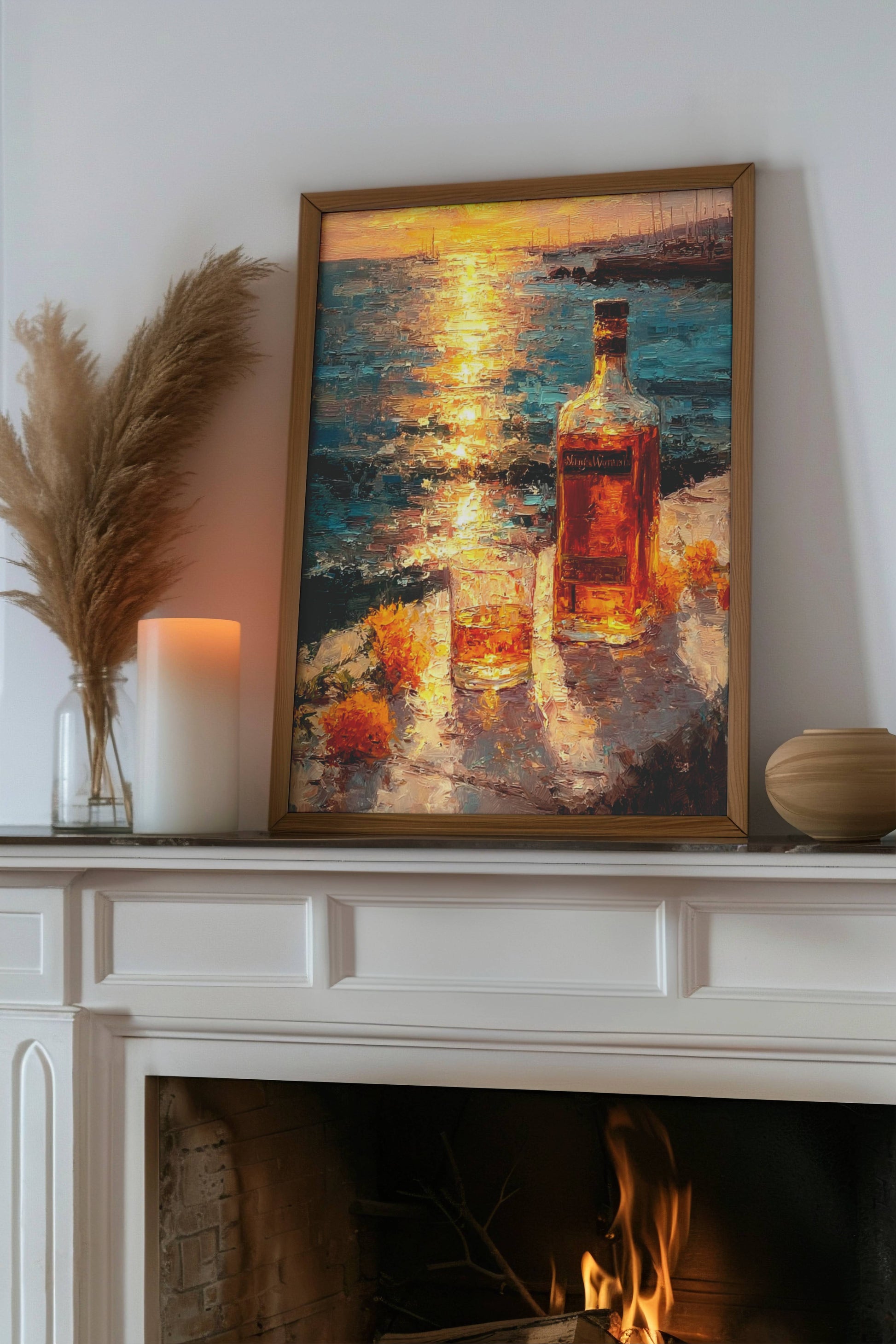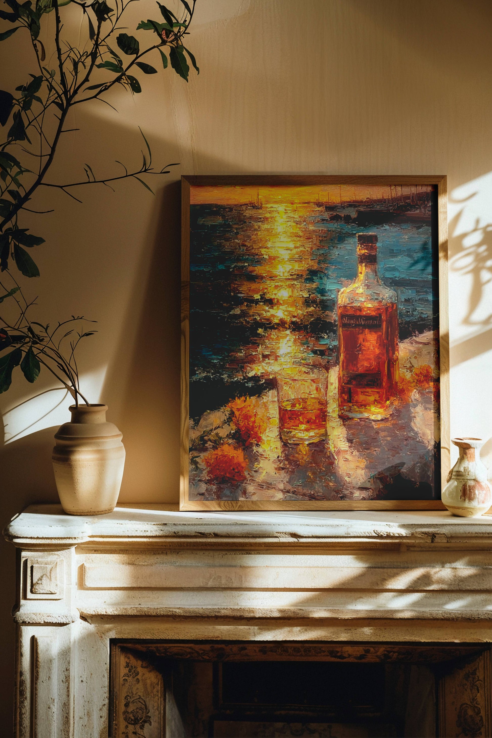 日落威士忌倒影——印象派海滨油画 | 数字下载墙艺术