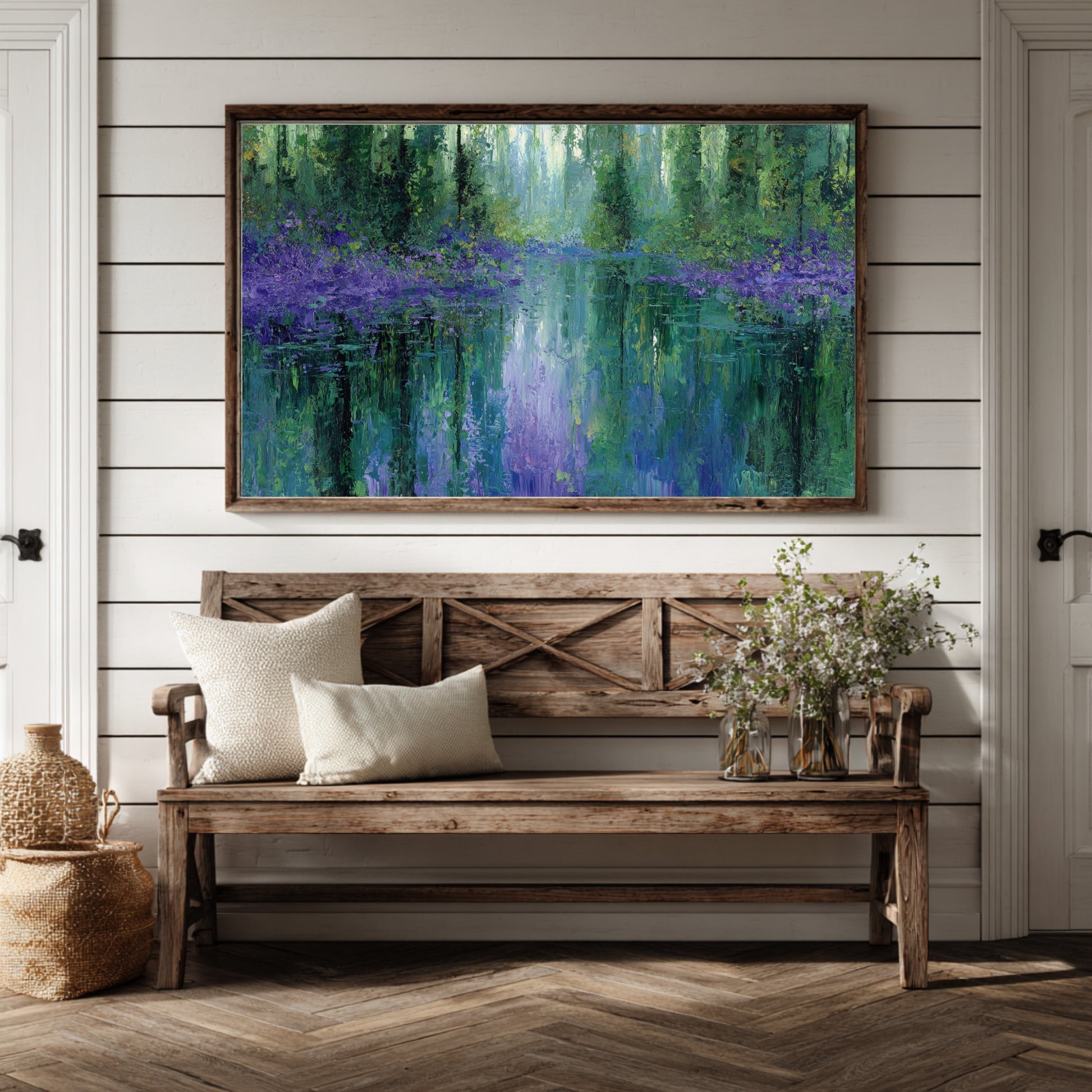 瀑布的低语——印象派森林倒影 | 数字下载墙艺术